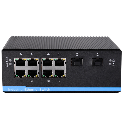 Conmutador PoE gestionado para cámara de seguridad, conmutador de red ethernet industrial, 10 puertos, 8 puertos, 48v, carril din, 1000Mbps, gigabit, vlan